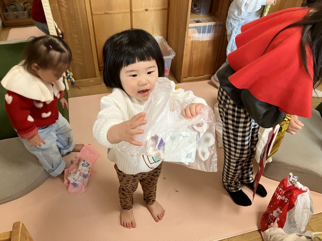 「みて!!もらったよー!」と受け取ったプレゼントを嬉しそうに保育者に見せてくれました❤️