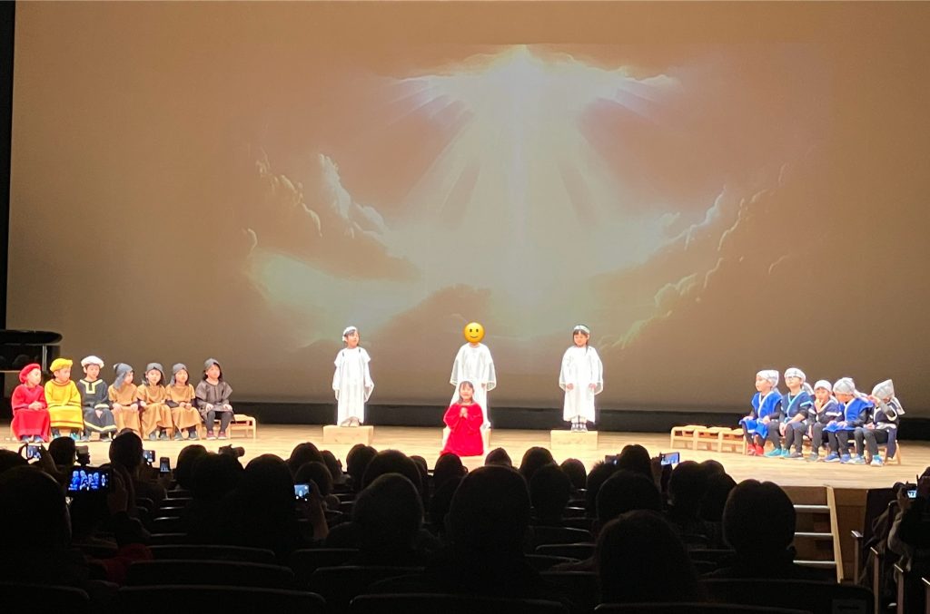 年少組・年中組は絵本を題材に劇ごっこ、年長組はクリスマスページェントを行いました。